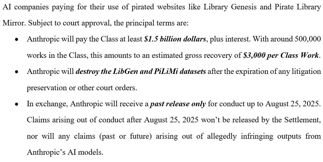 Важно отметить, что соглашение не разрешает компании использовать произведения в будущем. Оно касается только действий, совершенных до 25 августа 2025 года, и не предоставляет Anthropic лицензии на будущее обучение.